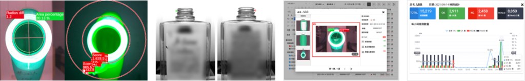 VINES 智慧視覺系統,搭配 2-3 台工業相機,同時完成多項檢測項目,包括瓶口變形、瓶口阻塞、瓶口螺紋、耳料殘留、瓶身標籤定位、比對與條碼辨識等,可配合產線速度,實現穩定、準確的檢測。